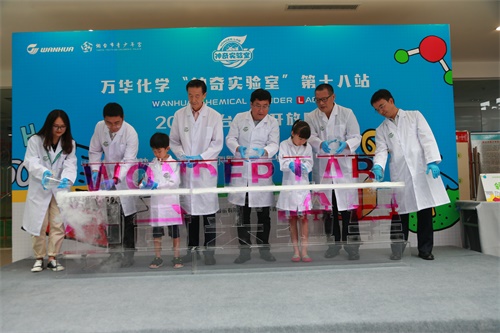 7月17日-21日,万华化学“神奇实验室”第十八站——2019烟台暑期开放日在烟台市青少年宫顺利举办。万华实业集团党委委员、工会主席王剑波,共青团烟台市委党组成员、烟台市青少年宫主任曲凤家和万华化学科学家、大学生志愿者及小学生代表共同启动本次活动。为期五天的神奇实验室开放日吸引了近500名中小学生参加活动,活动现场乐趣横生,热闹非凡。