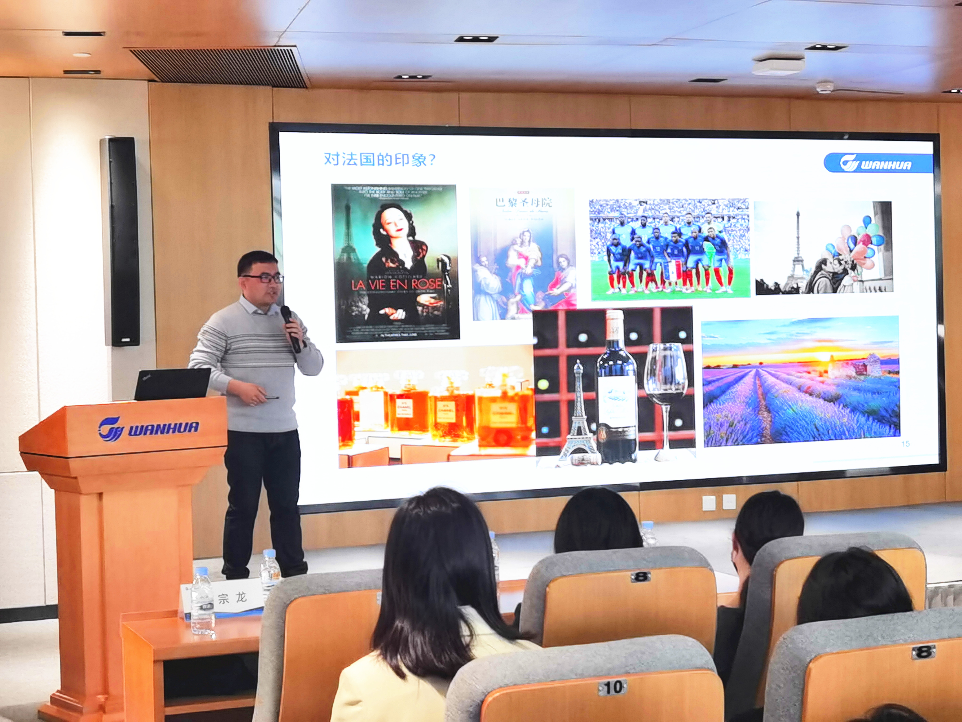 来自万华化学中央研究院技术开发中心的杨宗龙博士为大家系统介绍了法国留学生涯的点滴,以自身的经历和照片为载体,别开生面的为在场师生分享了法国教育体系、留学期间的学术研究、衣食住行等,内容丰富有趣,并对法国留学的优势与不足进行了客观的分析。
