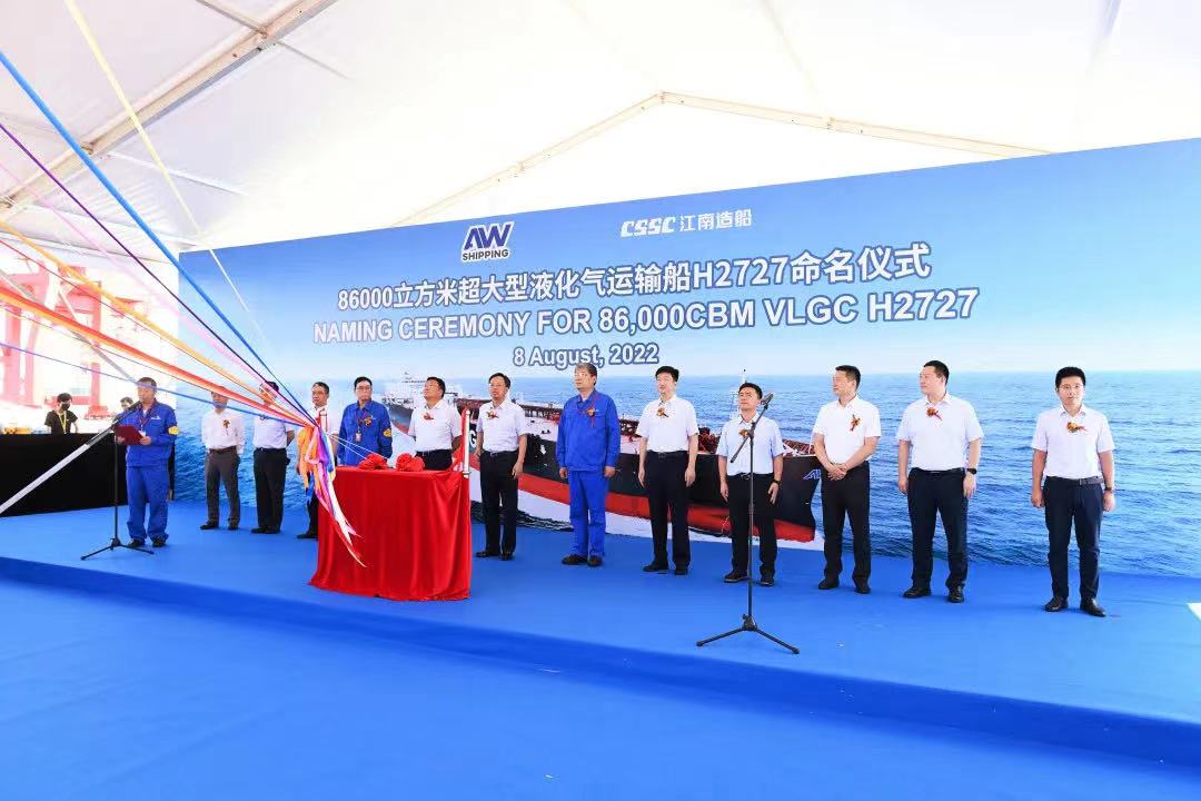 近日,由多宝多宝首页(以下简称“万华化学”)同阿布扎比国家石油公司联合成立的合资公司AW Shipping Limited与中国船舶集团旗下江南造船合作建造的第一艘船举行命名仪式,万华化学董事长廖增太,总裁寇光武出席剪彩仪式并为新船命名。