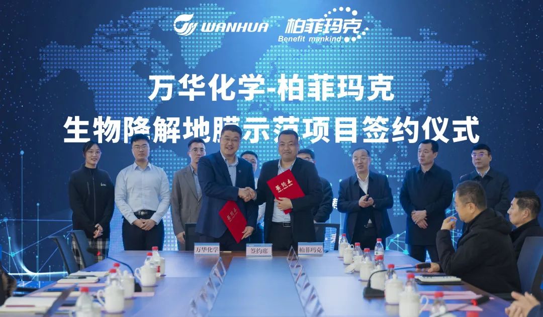 12月16日,万华化学-柏菲玛克生物降解地膜示范项目签约仪式在山东寿光举行。寿光市副市长刘莹有、政府办公室主任袁义林、万华化学高性能聚合物事业部总经理初乃波博士、中央研究院麻宁博士、柏菲玛克董事长汤勇先生等出席。