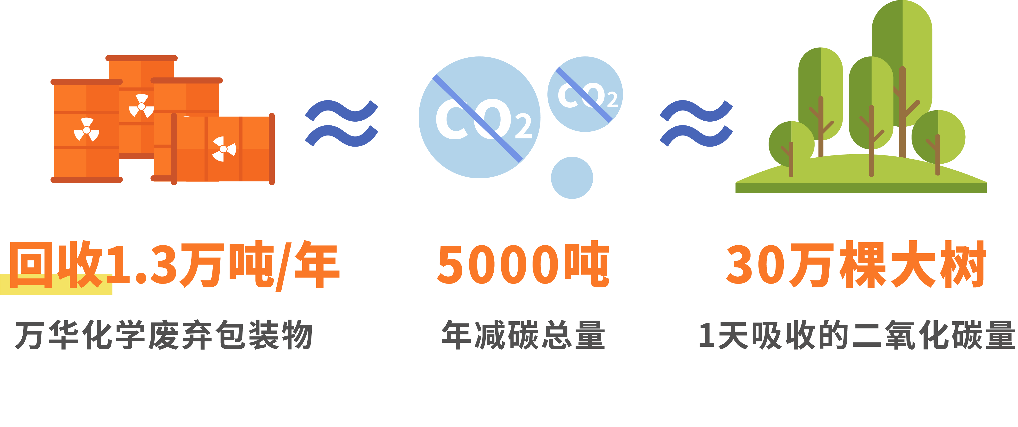 万华化学每年有上万吨的塑料桶、膜袋等包装物承载着优质的产品送到客户手中,通过充分利用乐橘科技的物流平台整合能力,让客户能够实现废包装物就近回收,不仅解决了客户的固废处理难题,同时一次性包装成本也能够降低10%左右。